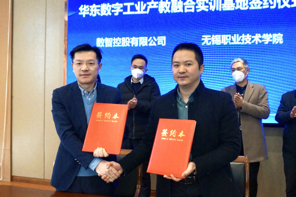 1月7日上午,我校在厚德楼F201会议室与数智控股集团举行校企战略合作签约仪式,成立华东数字工业产教融合实训基地。无锡市工信局党组成员、副局长张弦、产业人才与合作处处长尹清涛,我校校长周桂瑾、科产处、党校办、机械技术学院等相关部门、学院负责人,数智控股集团决策委员会主席、副总裁杨柳、国产化开发中心总经理徐学春、商务总监叶川出席活动。