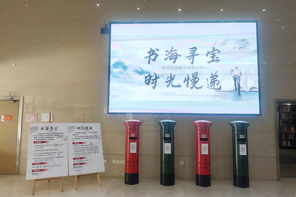图书馆于9月至10月开展了“书海寻宝+时光慢递”迎新读者活动,每日下午学生可来图书馆一楼大厅参与活动。“书海有宝,待你来找”——学生来馆领取一份任务,按照任务要求在馆内“寻宝”,找寻任务答案,从中学习图书馆有关知识;“时光慢递,照见成长”——学生来馆领取信封、信纸,写下一封信给未来的自己,投递于“时光慢递”邮筒中,图书馆将为读者保存信件至毕业季,“让毕业前的你照见刚入学的你”。两项活动的参与者均可领取图书馆定制的小台灯、帆布袋等小礼品,作为纪念。这两项有趣更有意义的活动吸引了很多读者驻足和热情参与,很多同学自发将活动宣传出去,引来更多同学的参与。持续20天的活动,始终热度不减,参与数高达800人次,取得意想不到的收获。