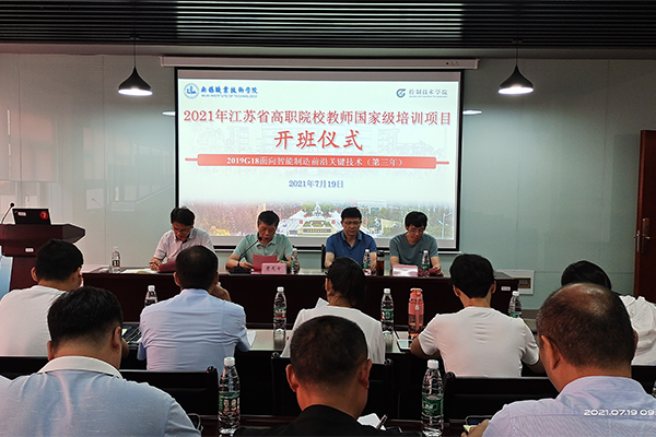 719日,由我校承办的2021年江苏省高职教师国家级培训项目—面向智能制造前沿关键技术培训班在控制技术学院202会议室举行了开班典礼。