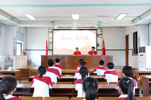 百年党史进课堂,红色故事入人心。714日上午,实践团第一站来到江阴华西实验学校,聆听村支书讲党史故事,开展建党百年、风华正茂主题宣讲,向中学生现场讲解党徽团徽的异同,与学校领导、老师开展座谈交流。实践团12位中外师生成员将党史学习和志愿精神紧密结合,以贴近中学生实际的讲解方式,同中学生一起真正将党史学习教育入脑、入心、入行。