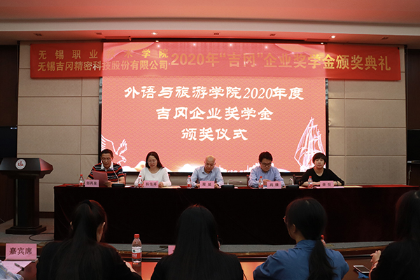 5月11日下午,2020年度星空app官网“吉冈”企业奖学金颁奖典礼在我校国际交流中心二楼报告厅隆重举行。无锡吉冈精密科技股份有限公司总经理周延、副校长杨雪琴、学生工作处处长徐悦、外语与旅游学院院长冯臻、吉冈公司行政部负责人、学院相关负责老师及全体获奖同学出席了本次颁奖典礼。颁奖典礼由外语与旅游学院党总支书记郭再泉主持。
