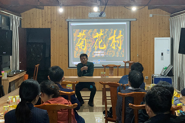 在山联村,参培人员听取了山联村老书记吴岳平的“精准扶贫乡村振兴—兴农产品服务推广和产业开发”、山联村现任书记朱虹的“返乡创业与社会主义新农村建设——大学生村官的成长之路”以及星空app官网学生处处长徐悦的“毕业生就业指导与职业生涯规划”三场专家讲座,参观考察了山联村规模化乡村民宿项目建设运营、山联黄菊种植基地、深加工中心和市场推广产业化中心,观看了山联村历史影像资料,围绕乡村振兴、精准扶贫、返乡创业展开了热烈的讨论。