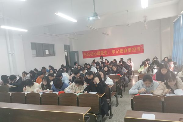 为深入贯彻习近平新时代中国特色社会主义思想,进一步增强学院学生思想政治素质,12月10日下午,财经学院在明德楼C-307举行“不忘初心跟党走 牢记使命勇担当”党史竞赛活动。来自分院党校共50多名入党积极分子参与了此次活动。