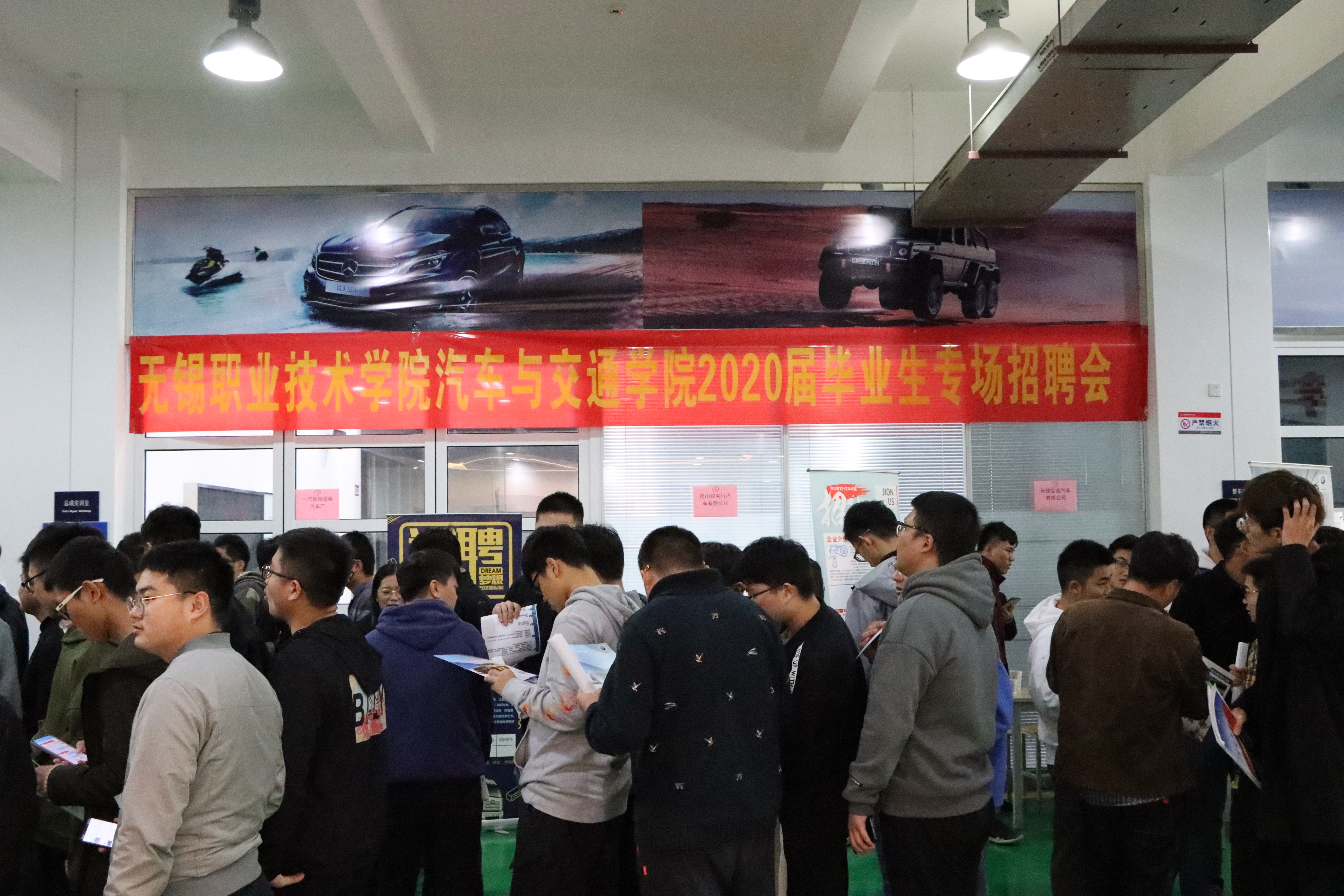 招聘会前夕,汽车与交通学院各部门进行充分调研、精心部署,主动走访教学与就业实习基地单位、校友企业,发动系部老师进行宣传与沟通,最终成功邀请到一汽解放锡柴汽车厂、无锡保时捷中心、无锡可达奔驰、无锡宝尊、宝城等公司在我校招聘,为毕业生提供了汽车装配、销售顾问、机电技师等500个实习、就业岗位。