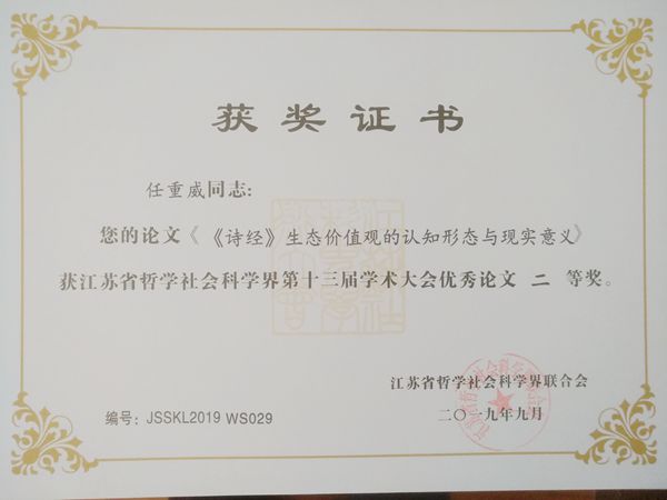 近日,江苏省哲学社会科学第十三届学术大会暨无锡市哲学社会科学第十届学术大会“文学与历史学”专场在江南大学举行,经过学术大会严格评审,产生了获奖论文40篇,其中一等奖11篇、二等奖29篇,我校任重威老师撰写的学术论文《< 诗经>生态价值观的认知形态与现实意义》、屈海香老师撰写的学术论文《明清无锡运河与出版研究》分获学术大会优秀论文二等奖,集中展示了我校青年教师对优秀传统文化内涵及江南大运河人文价值和文化意义的探索和思考。