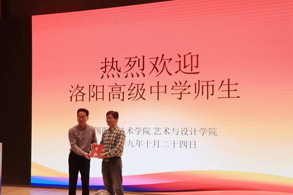 上午九点,艺术学院党总支书记罗嘉军带领到访师生们参观智能制造工厂。通过罗书记的介绍,同学们对工业自动化制造有了初步了解。随后的欢迎仪式在辅楼报告厅举行。罗书记首先对洛阳高中师生的来访表示热烈欢迎,并作“励志成才,圆梦心仪高校”的主题讲话;承剑芬教授将我校的发展历史、教育理念、办学特色、专业设置、师资条件等基本情况作了介绍,重点对我校学科建设和历年招生录取情况进行了讲解。洛阳高中邹国强校长对我校的综合实力、校园环境、硬件设施给予了充分肯定,他在讲话中表达了对我校优美的校园环境、浓郁人文气息和良好的学习氛围的认可,对我校的热忱接待表示感谢,同时也表达了进一步与我校加强交流的愿望。最后,罗书记将我校60周年校庆纪念品赠予邹校长一行。欢迎仪式结束后,洛阳高中师生在艺术学院老师和学生志愿者的带领下参观了校史馆、艺术学院学生的优秀设计作品以及学生宿舍和食堂,洛阳高中师生一致表示通过此次参观交流,对大学有了一个全面直观的体验和了解。