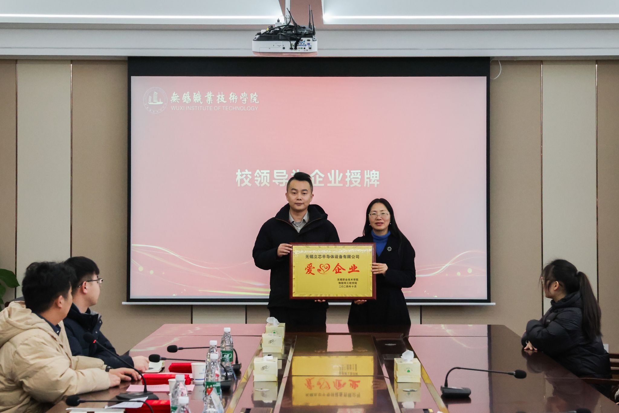 会上,杨雪琴向无锡立芯半导体设备有限公司颁发了“爱心企业”荣誉牌匾,期望双方能够继续深化校企合作,共同推动学校与企业的共同发展。