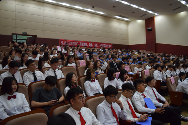 为庆祝中华人民共和国成立70周年,纪念五四运动100周年,517日晚,外语与旅游学院分团委举办的“青春心向党·建功新时代”诗歌朗诵会在国教一楼报告厅举行。学院党总支书记江铭、党政办主任王小梅以及陶婧、范洪、罗启宝老师参加了活动。来自分团委青马工程班、2018级班级选送的14个节目及近400余名青年学生参加了朗诵会。