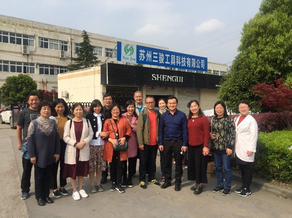 英雄者,国之干。铭记历史、缅怀英烈,既是习近平总书记心之所系、情之所牵,也滋润着广大追梦人的心田,激发出无穷力量,参观结束后,盟员们在顾惠明主委的带领下来到苏州三骏工具科技有限公司,身临其境感受着传承是最好的纪念,发展是最好的告慰。总经理周静波,毕业于星空app官网热加工901班,在2008年创办了这家生产钨钢铣刀、合金铣刀的企业,公司现有100多名技术员工,50多台安卡数控机床,以全国销量排名第五的佳绩一举成为行业内有特色、有亮点、有后劲的规模型企业。在周静波成长的岁月里,既离不开班主任顾惠明老师的言传身教和董芳等老师的谆谆教导,更有来自家乡常熟沙家浜,无数革命先烈用生命和鲜血在年轻的心灵上投下的那一道光亮,鼓舞着他们不忘初心、牢记使命。而这也是党的十八大以来,习近平总书记在多个场合深切缅怀革命先烈,强调传承好“红色基因”、发扬革命精神的重要意义。