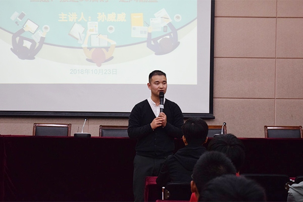 在随后的讲座中,孙威威以欧尚金牌讲师的风范面向在场的学生展现了一个专科学生成功逆袭欧尚中国总部市场部经理,成为人生赢家的光辉历程。他以幽默风趣而又不失严谨的方式讲述了自己大学生活曾经遭受的挫折,但是他毫不气馁,给自己立下了大学三年在校的十大目标,最终通过自己的努力实现了梦想。初入职场,尽管遭遇学历上的不公正对待,他毫不放弃,充分展示自己的实力,成为了当年欧尚华东区录用的唯一一名专科学历的见习经理。在职场上,他认真向前辈学习,积极融入团队,努力拼搏成为团队的主力,先后担任欧尚超市部门经理、华地集团大统华超市事业部高级营运经理、欧尚中国区培训学院教官、欧尚中国市场部首席营运经理,并获得欧尚中国优秀部门经理、欧尚中国金牌教员等荣誉称号。