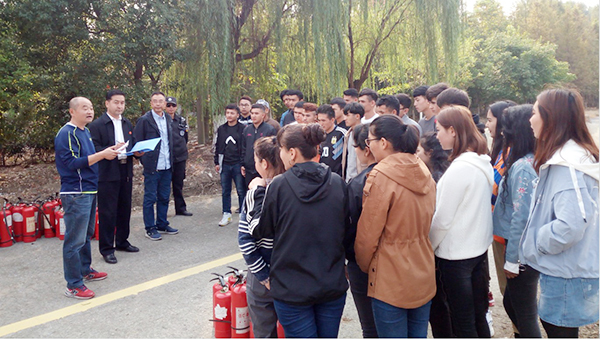 保卫处消防专管员严尉雄从火灾的种类、如何报警、宿舍用电的注意事项、初起火灾的扑救、消防设备的分类使用维护等方面作了讲解。之后,向各位同学演示了常用消防器材灭火器的使用方法,并组织培训学生逐一进行了灭火演练。