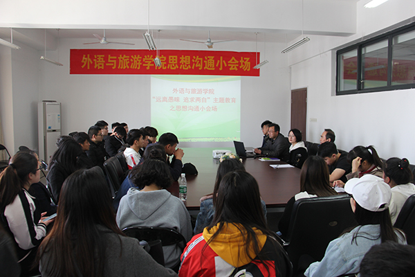 思想沟通小会场是外语与旅游学院2018年度“远离愚昧、追求两自”主题教育活动的重要组成部分,旨在帮助各种不同类型的学生解决思想问题,找对努力方向。