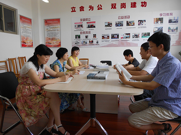 民进无锡职院支部自2015年底成立以来,会员们齐心协力出谋划策,在繁忙的本职工作之余热心开展公益活动和社会服务。今年,支部还积极响应民进市委提出的示范支部建设要求,目前申报工作已完成。在温馨整洁的支部活动室里,墙上张贴着《支部工作活动制度》、《支部建设工作规程》、《组织生活制度》、《支部活动室管理制度》等章程,以“立会为公、双岗建功”为主题的展板上按照会员风采、公益活动、学习教育等主题精心布置。