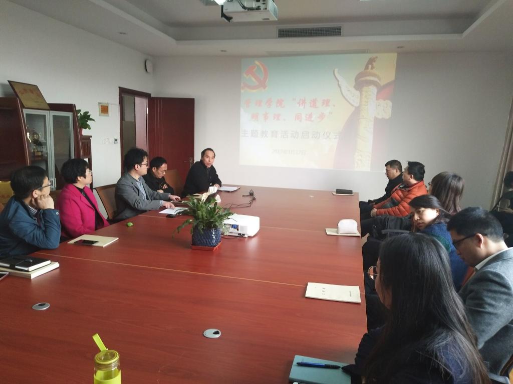为贯彻落实全国、全省高校思想政治工作会议精神,发挥教师特别是党员教师的先锋模范作用,积极探索当前形势下育人、管理、服务方式方法,3月17日下午,管理学院在明德楼A415会议室启动“讲道理、明事理、同进步”主题教育活动启动。