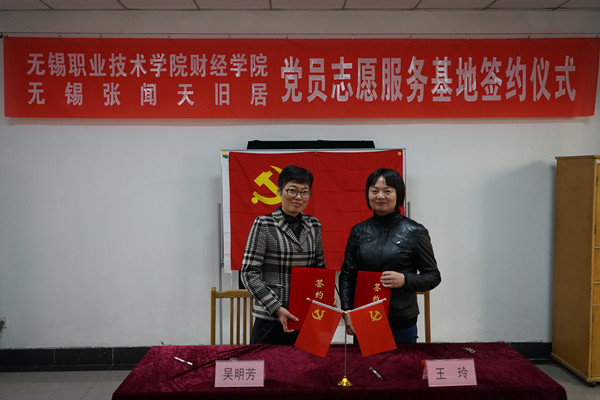 签约仪式上,王玲主任简要介绍了张闻天旧居的基本情况,希望通过党员志愿服务基地建立,与我校构建长期有效的合作共赢关系,不断丰富党员服务内容,实现结对共建的预期目标。吴明芳书记通报了财经学院党总支建立党员志愿服务基地的动因及设想,希望依托张闻天旧居的红色教育平台,加强服务型党组织建设,精准服务无锡地区的青少年红色教育,助力“强富美高”新无锡发展,让财经学院党总支全体党员努力践行“两学一做”学习教育,做“四讲四有”合格党员。