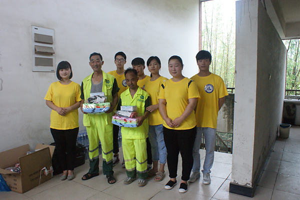 在与环卫工人们的聊天中,志愿者们了解到有些环卫工人家境困难,每天忙于劳作连头发都没时间打理,于是邀请他们来学校的理发店理发,看到镜子中面目一新的自己,环卫叔叔们露出了开心的笑容。12日下午,志愿者们还带上水果、牛奶,专门去环卫所、医院慰问看望了大病初愈的三位环卫工人。