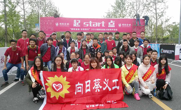 5月8日上午,2016无锡“国联金融,与您同行”大型公益徒步活动在滨湖区金融一街拉开帷幕,3000多名徒友参加了主题为“健康、快乐、低碳”的阳光徒步活动,我校管理学院向日葵义工站的60名同学在邹笑言老师的带领下参与了此次活动的保障服务工作。