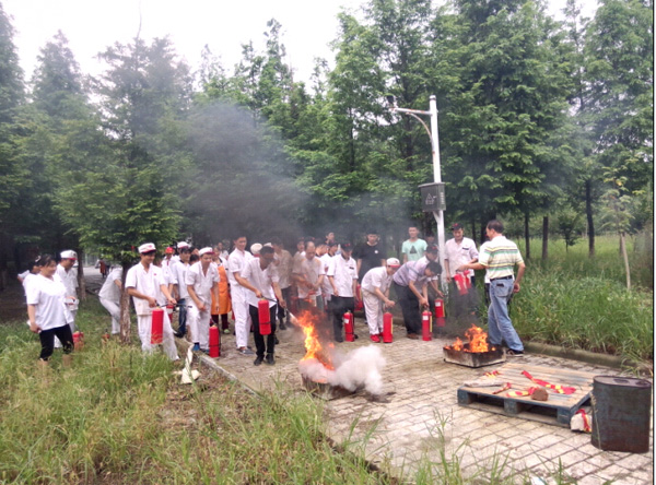 讲座结束后,保卫处还组织大家在J1西南角小河边现场演示了消防灭火器的使用方法,并进行灭火演练。