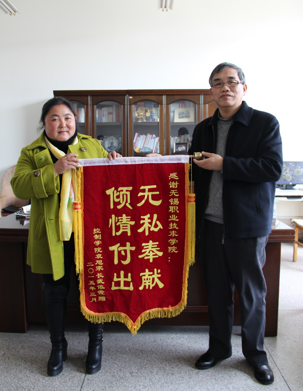 3月25日,袁旭同学的母亲武女士手捧锦旗来到学校,代表袁旭家人对学校表示由衷的感谢,华坚副校长代表学校接受了锦旗,并表示:关心热爱学生、对学生负责,是我们每位学生工作者的责任,也很好地体现了“学生的家园”这一办学理念,希望袁旭保重身体,早日恢复如初,用自己的努力为学校的发展多做贡献。
