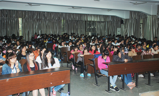 10月21日下午,经济管理学院在实验楼阶梯教室举办防诈骗安全讲座,无锡市阳光派出所王玮副所长应邀作专题讲座,经管学院2014级新生及学生会干部近300人到场听讲。