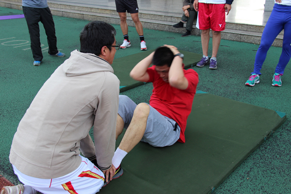 测试分为中青年组(50岁以下)和老年组(50岁以上)两个组别,中青年教师组测试项目包括心肺耐力类、速度类和肌力类;老年教师组测试项目包括心肺耐力类、肌力类和柔韧类。测试过程中,老师们挥汗如雨,都取得了不错的成绩。体育部负责人表示,要将体育教师体能测试常态化,至少每年举办一次,希望所有体育老师在做好教学工作的同时保持良好的体能、技能状态,以更新更好的状态投入到以后的工作中去。