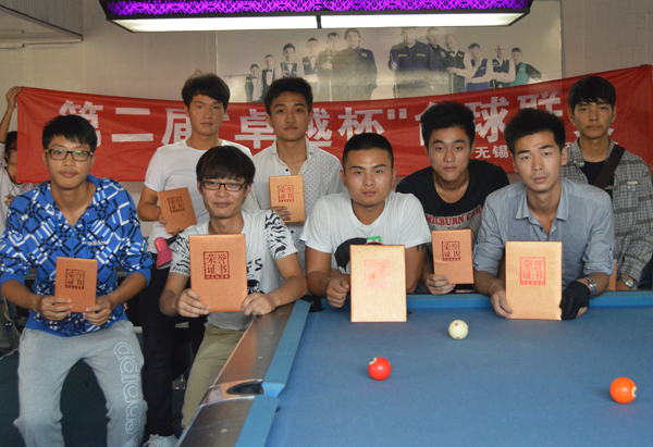10月13日,由我校凌云台球协会举办的第二届“卓越杯”台球联赛落下帷幕。比赛吸引了全校52个台球爱好者参加,经过为期一天的角逐,软件31281张亚威夺得冠军,计算机31171杨志强获得亚军,材料11231宋长洋获得季军。这场比赛丰富了学生的业余生活,同时为我校代表队参加明年无锡市高校台球联赛做了热身准备。(沈佳健)