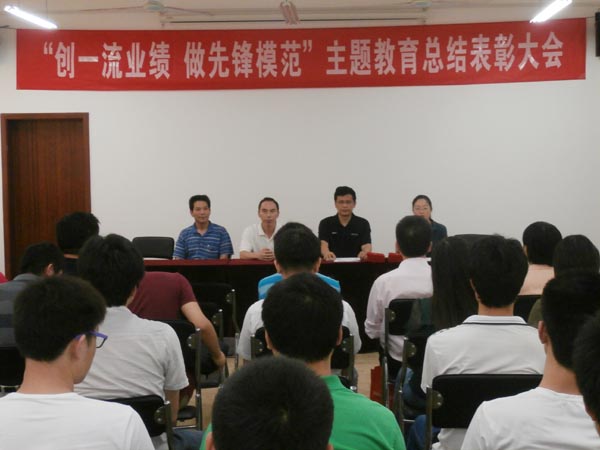 6月18日,机械技术学院党总支在国际交流中心209会议室召开“创一流业绩 做先锋模范”主题教育活动总结表彰大会。大会上,对2012-2013学年机械党总支开展的“创一流业绩 做先锋模范”主题教育活动进行了总结,并对发挥先锋模范作用的党员进行了表彰,其中,余爱华、黄建园、孙鹏、陈桂芬、华红芳五位同志被评为2012-2013学年度院党总支“优秀共产党员”,李薇、周丽、赵飞、宋天革、张静五位同志被评为“党员责任区工作先进个人”。