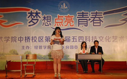 5月28日晚,经济管理学院在中桥校区东篮球场举办了主题为“梦想点亮青春”第十六届五四科技文化艺术节文艺晚会。经管学院党总支书记胡全裕、院长崔平、副院长翁爱祥、冯臻、有关部门领导及师生共千余人观看了晚会。校团委书记徐悦、经管学院二级关工委副主任陶福民应邀出席。