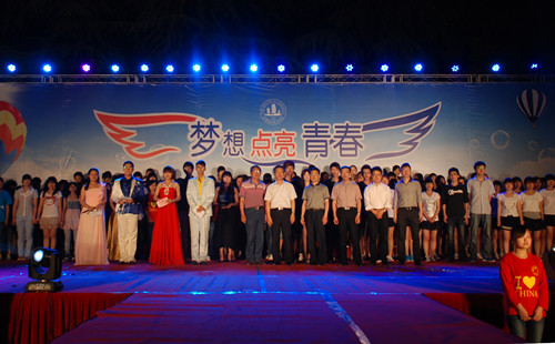 晚会在青春动感的热舞中拉开帷幕,场下观众的激情被瞬间点燃。整场晚会精彩纷呈,有情景相声、小品、诗朗诵、歌曲、青春舞蹈等16个节目。小品《大学小事》紧贴校园生活,内涵深刻;诗朗诵《忆青春》声情并茂,热情洋溢;街舞《TEN MONSTER》热情奔放,充满青春活力。整场晚会持续了两个小时,演员投入的表演博得在场领导和师生的阵阵掌声和欢呼声。最后在《最美的星光》的美妙歌声中,晚会圆满落幕。