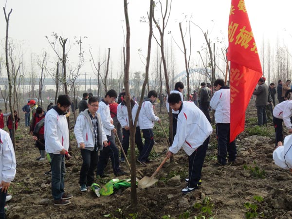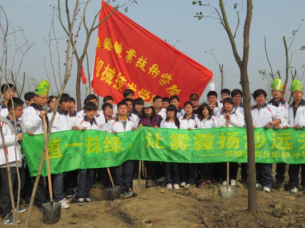 3月16日上午,机械技术学院分团委联合无锡绿化办组织了一次主题为志愿植树活动,40多名学生志愿者利用休息日来到惠山古镇,播种一片绿色的希望。