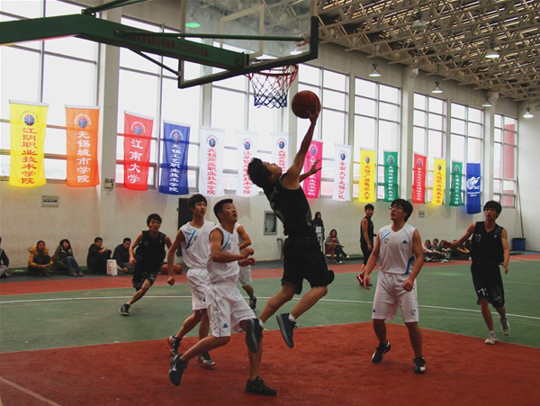 我校男篮在前两天的小组赛中一路猛进,以三战三捷的战绩获得小组头名,顺利打入决赛。决赛中我校健儿不惧劲敌,顽强拼搏,最终勇夺无锡市第四届高校男子篮球联赛乙组冠军。(刘超 文/李铎 摄)
