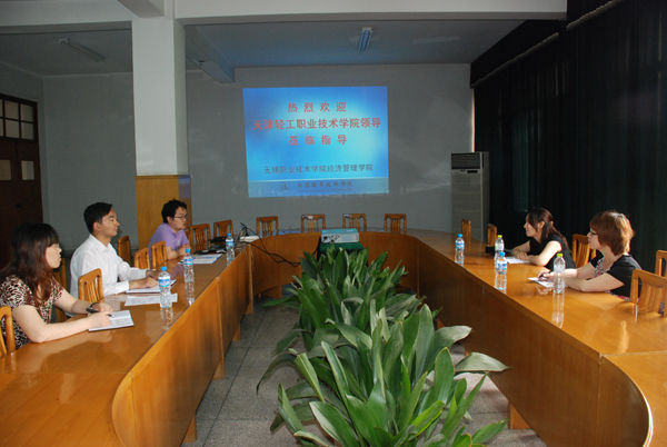 6月8日上午,天津轻工职业技术学院的白洁等2名骨干教师来到经济管理学院,与工商企业管理专业教研室主任和财务管理专业的教研室主任从人才培养模式、课程体系、校企合作、实训室建设及学生职业素养等方面进行了深入的交流,通过交流,双方相互学习专业建设和课程建设的经验与作法,拓宽了专业建设的思路。(于云波 文/ 吉鑫明 摄)