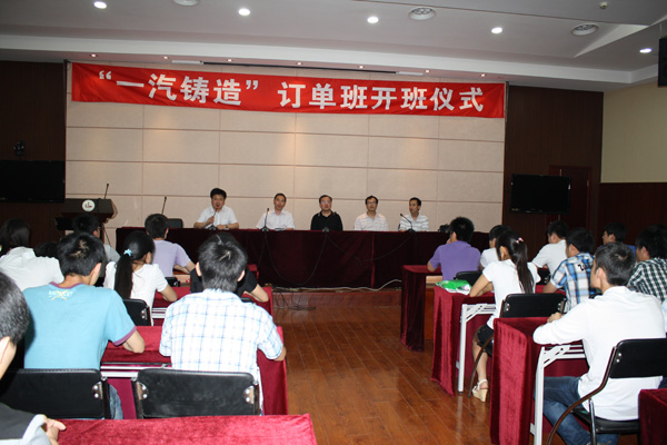 5月18日下午,机械技术学院“一汽铸造”订单班开班,无锡一汽铸造有限公司副总经理李海军、人力资源室主任唐为亮等3人,机械技术学院总支书记江铭、数控系负责人及相关教师出席了开班典礼。