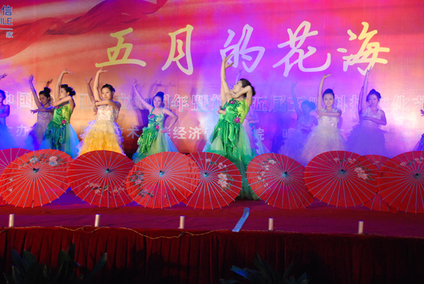 5月31日晚,经济管理学院在中桥校区东篮球场举办了主题为“五月的花海”大型文艺晚会,以纪念中国共青团成立90周年和庆贺院十五届五四科技文化艺术节。学校党委副书记谈向群、学生处和团委相关负责人,经管学院党总支书记胡全裕、院长崔平、副院长翁爱祥、冯臻以及校企合作企业、商会负责人等1000多人观看了晚会。
