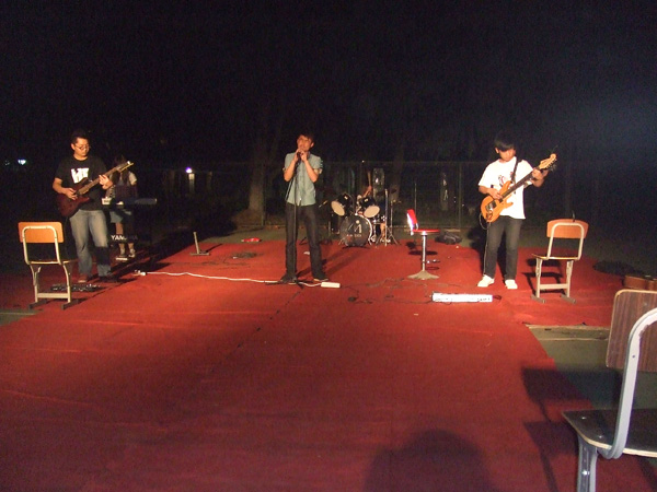 同学们围在简单布置的篮球场,欣赏着一曲曲优美动听的吉他弹唱。活动进行了一个多小时,直到晚上