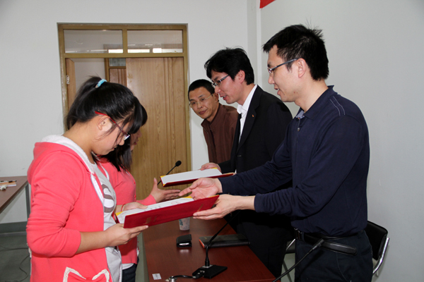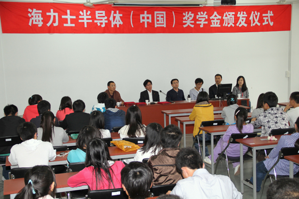 2010级邢倩梅、赵媛等10名优秀同学获得海力士提供的10000万元奖学金,郭再泉希望受到表彰的同学珍惜荣誉,继续努力,并希望广大同学以他们为榜样,刻苦钻研,不断提高自身素质,在新学期里取得更大的成绩。