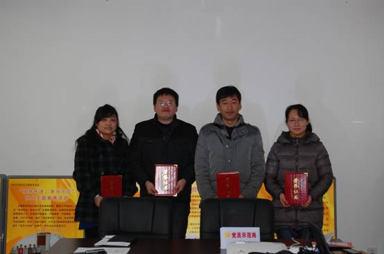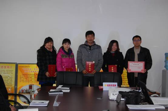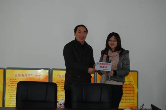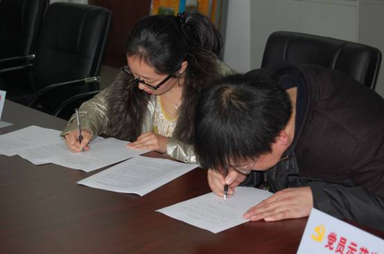 最后,与会党员与党支部书记签署2012年度《党员目标管理责任书》和《党员责任区协议》,作出创优承诺;总支书记授予新进教师党员“党员示范岗创建点”。(王小梅)