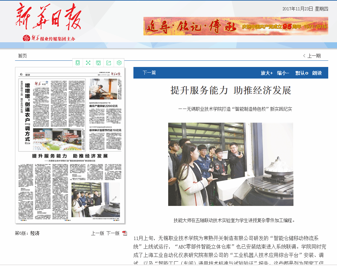 【新华日报】提升服务能力 助推经济发展——星空app官网打造“智能制造特色校”新实践纪实