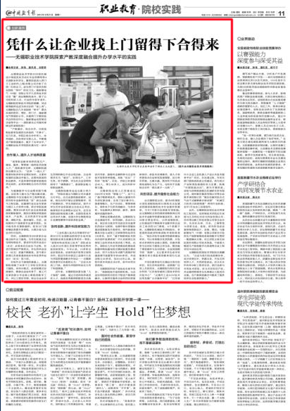 “高等职业教育培养的是生产、建设、服务、管理第一线的技术技能人才。”国家教学名师、无锡职院副院长顾京认为:“这种‘一线人才’既要有较多的专业理论知识,又要有较强的实践动手能力,还要有较高的职业素养,不是单靠学校教育就能培养出来的,必须依靠校企合作共同培养。”