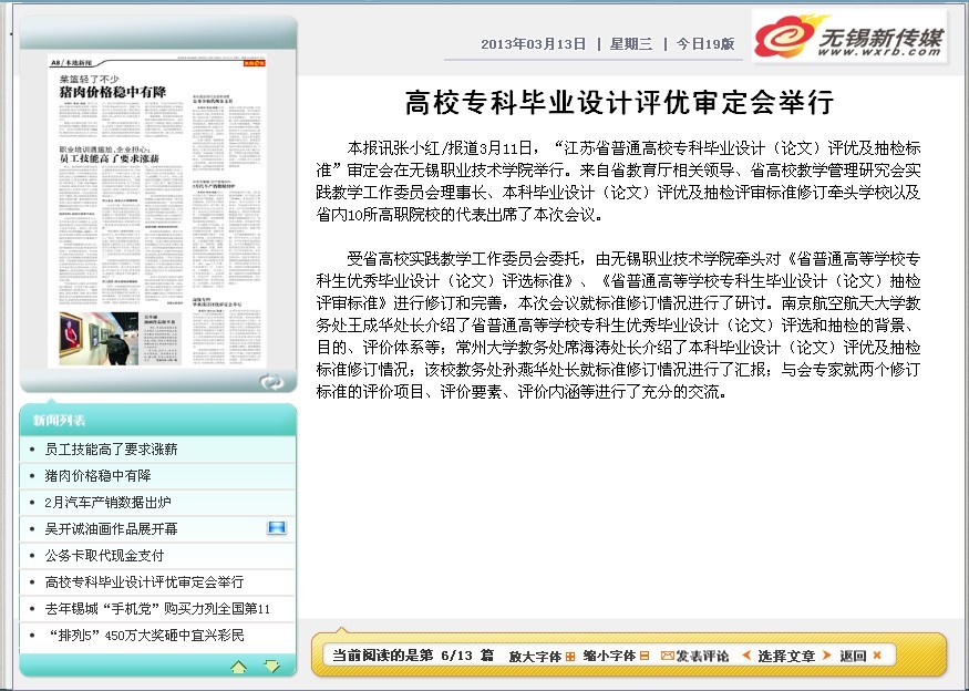 本报讯 张小红/报道 3月11日,“江苏省普通高校专科毕业设计(论文)评优及抽检标准”审定会在星空app官网举行。来自省教育厅相关领导、省高校教学管理研究会实践教学工作委员会理事长、本科毕业设计(论文)评优及抽检评审标准修订牵头学校以及省内10所高职院校的代表出席了本次会议。