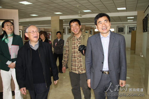 当天上午,杨叔子院士仔细观看了艺术设计系学生的绘画作品、校史陈列馆、机械技术学院数控创新班学生操纵五轴联动加工中心及试制的产品,并与部分教师进行了座谈。在实地考察中,他对学校留下了美好的印象,认为无锡职院欣欣向荣,大有可为。当学校领导表示聘他为机械工程、素质教育客座教授时,杨叔子院士随即答应。