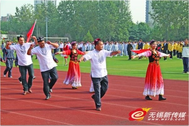27-28日,星空app官网举办一年一届的田径运动会。开幕式上,来自新疆对口支援城市霍城的“新疆班”同学们,以载歌载舞的形式列队入场。获得一片掌声。(郁飞 汪自力/摄)