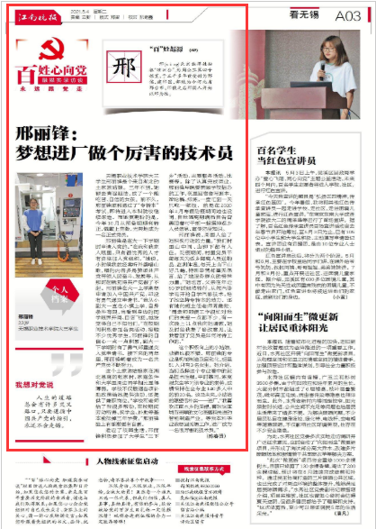 【江南晚报】邢丽锋:梦想进厂做个厉害的技术员