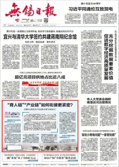 【无锡日报】“育人链”“产业链”如何衔接更紧密?