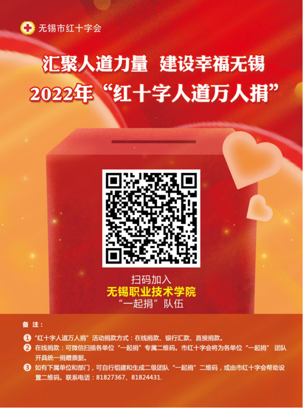 按照无锡市红十字会等部门发起的《2022年“红十字人道万人捐” 》倡议,现在全校范围内开展募捐活动。