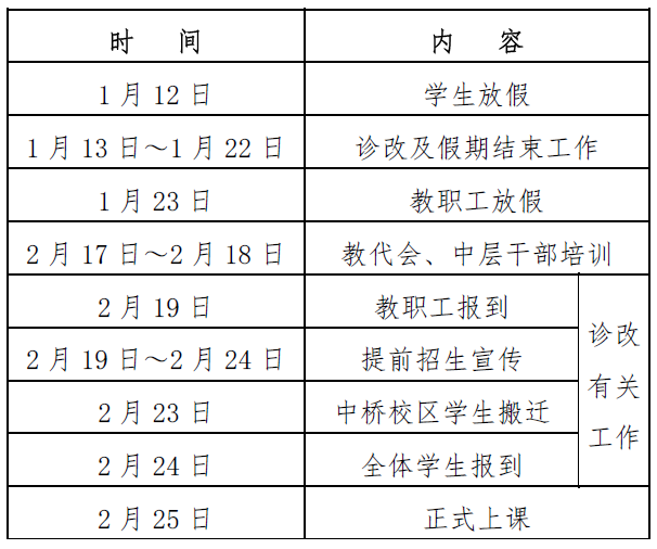 13.中桥校区由中桥校区管委会参照本通知,并结合校区功能平稳过渡的各项要求,自行安排。