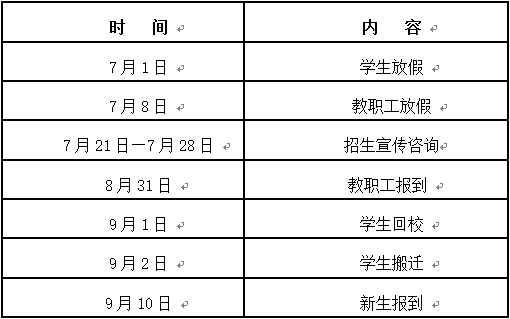一、放假及开学报到日程安排