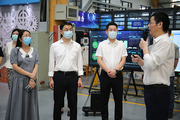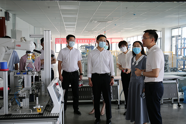 熊俊一行走访了我校智能制造工程中心、江苏省大学生创新创业实践教育基地等教学实践单位,认真听取了智能制造工程中心、机械技术学院相关负责人对学校产学研集成大平台建设和智能制造青年人才培养情况的介绍。