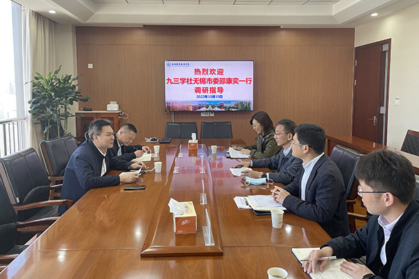 10月19日上午,九三学社无锡市委专职副主委兼秘书长邵康奕一行2人到我校考察调研九三学社星空app官网支社建设工作。校党委书记龚方红,统战部部长朱翔,校办副主任程继明,九三学社星空app官网支社主委杨丽等相关人员参加座谈会。