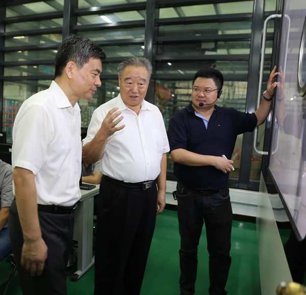 王瑞祥会长(中)参观学校智能制造工程中心